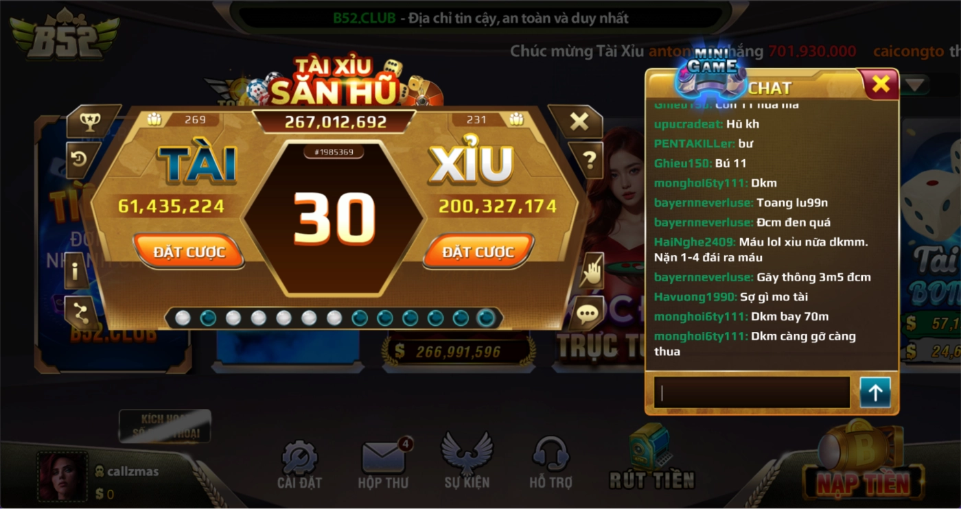 B52 CLUB là cổng game mang đậm chất dân gian, nơi anh em có thể tham gia chơi tài xỉu theo cách truyền thống. Tại đây, các chương trình tặng tiền luôn được cập nhật thường xuyên, giúp anh em có thêm cơ hội kiếm tiền. B52 cũng nổi bật với hệ thống bảo mật thông tin người chơi cực kỳ cao, mang đến sự yên tâm cho mọi người khi tham gia.